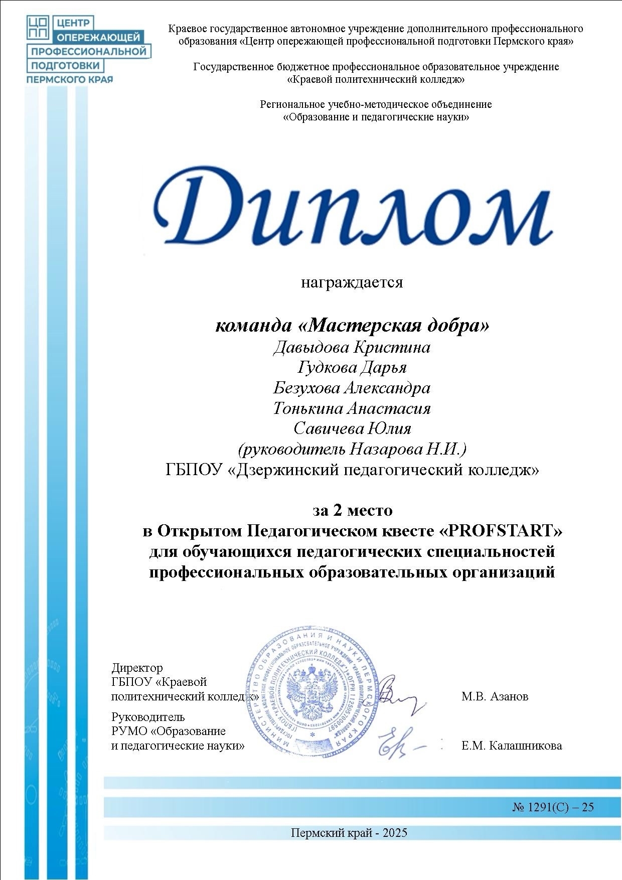 2 место на открытом Педагогическом квесте «PROFSTART»